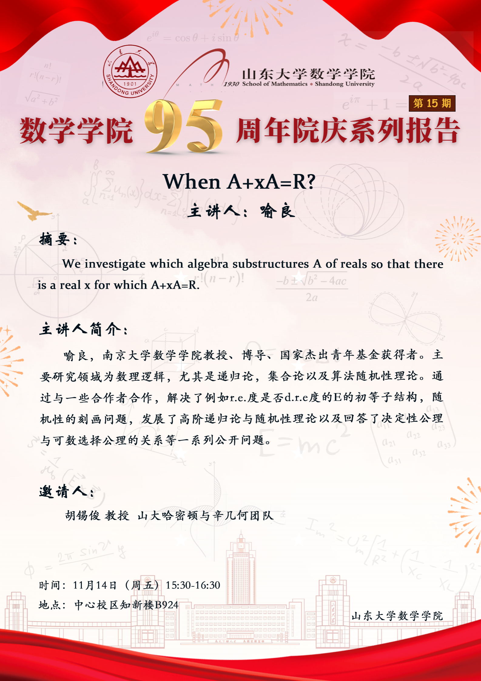 下一条:数学学院95周年院庆系列报告第14期:On equivalence relations induced by Polish groups