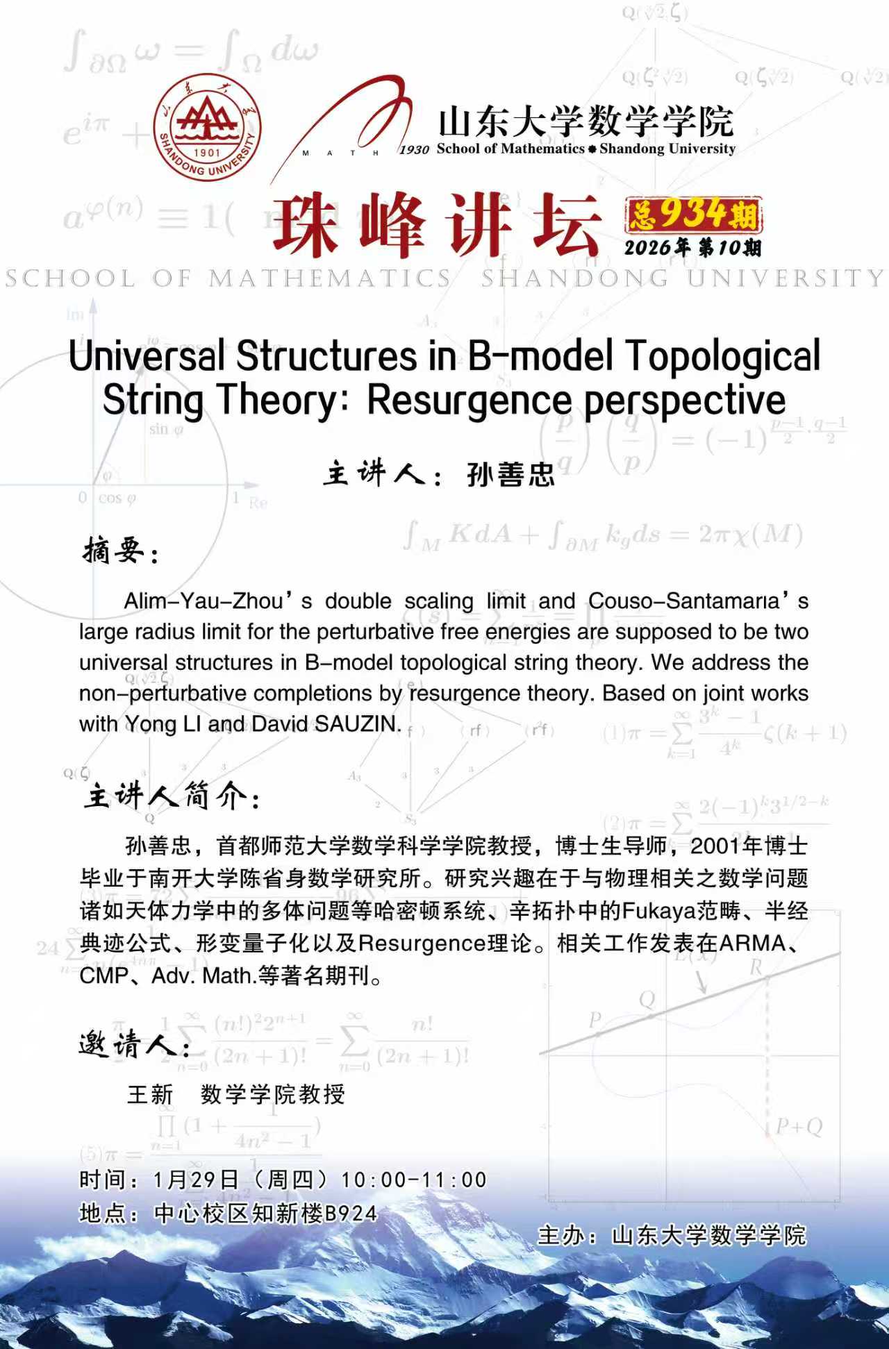 上一条:数学学院珠峰讲坛第935期:可压缩流体方程的适定性及极限行为
