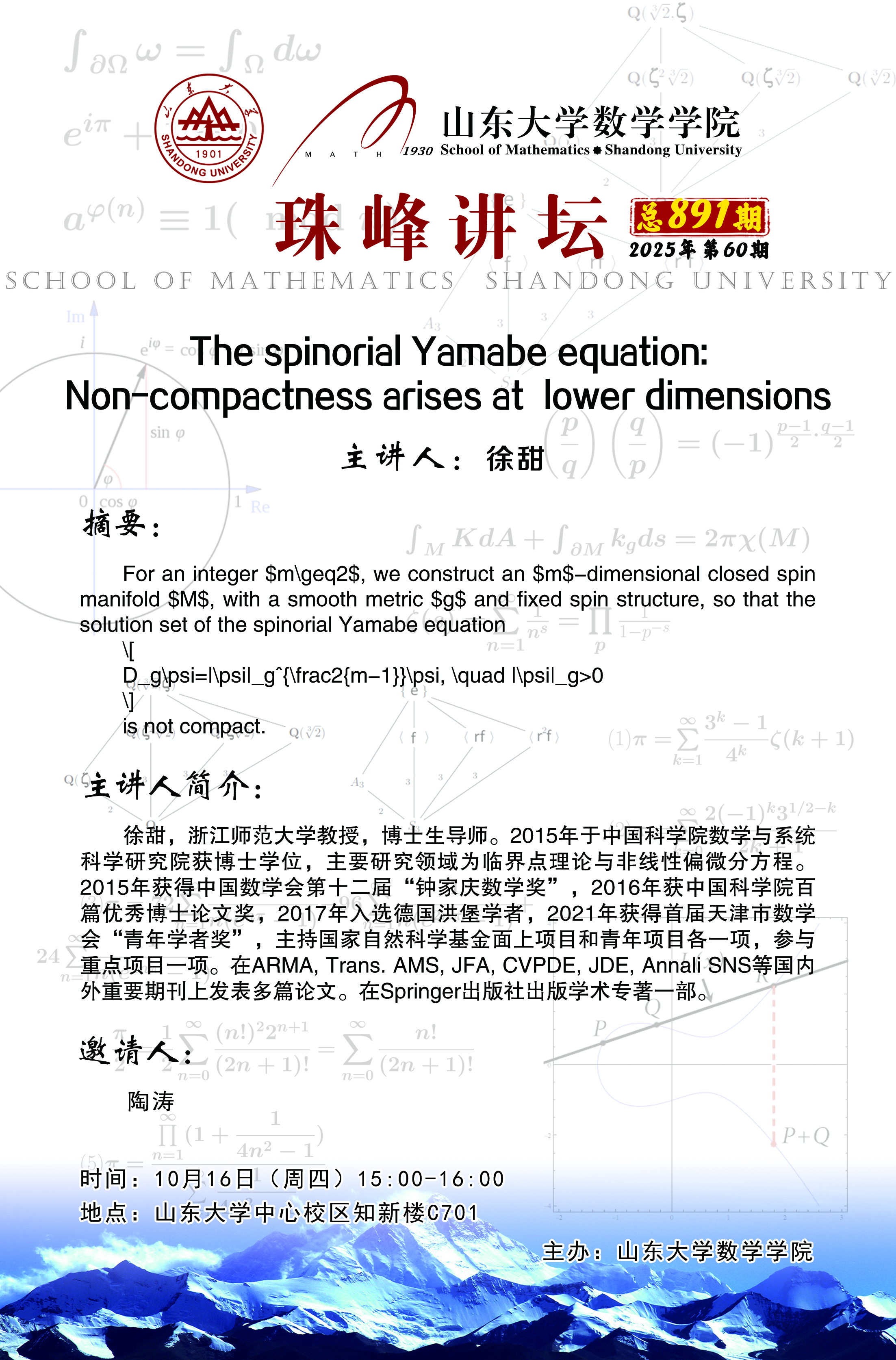 上一条:数学学院珠峰讲坛第892期:Counterexamples to Fujita's conjecture in positive characteristic
