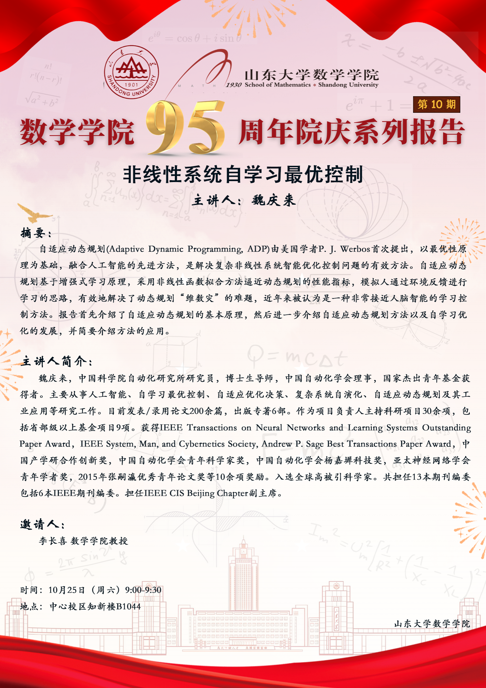 上一条:数学学院95周年院庆系列报告第11期:切换系统时间驱动切换控制设计