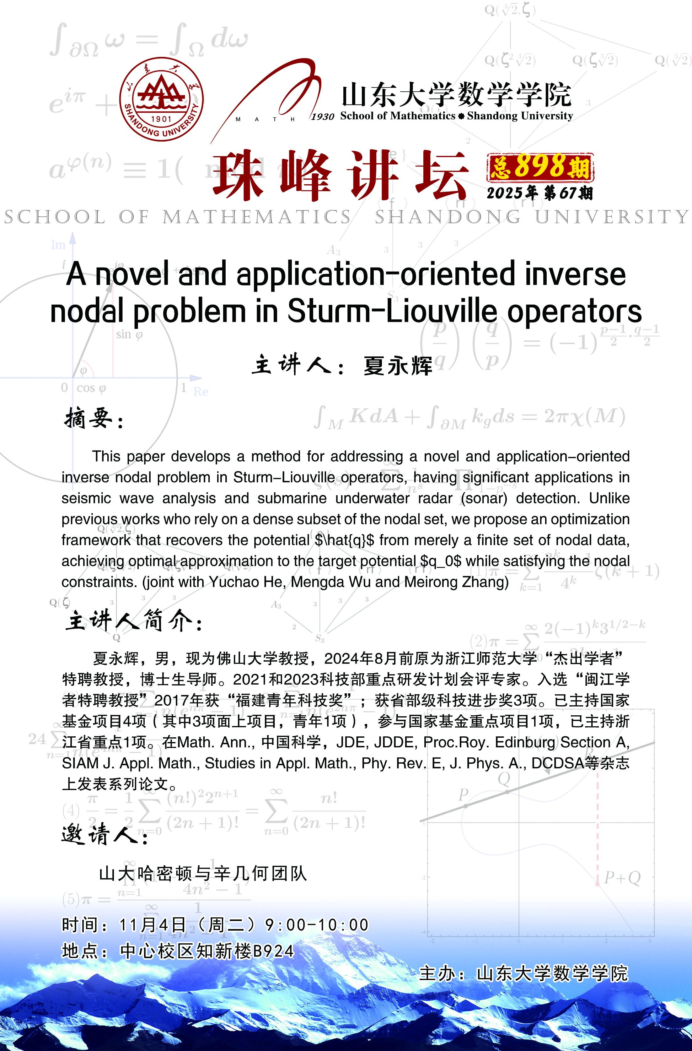 上一条:数学学院珠峰讲坛第900期:局部性代数几何简介
