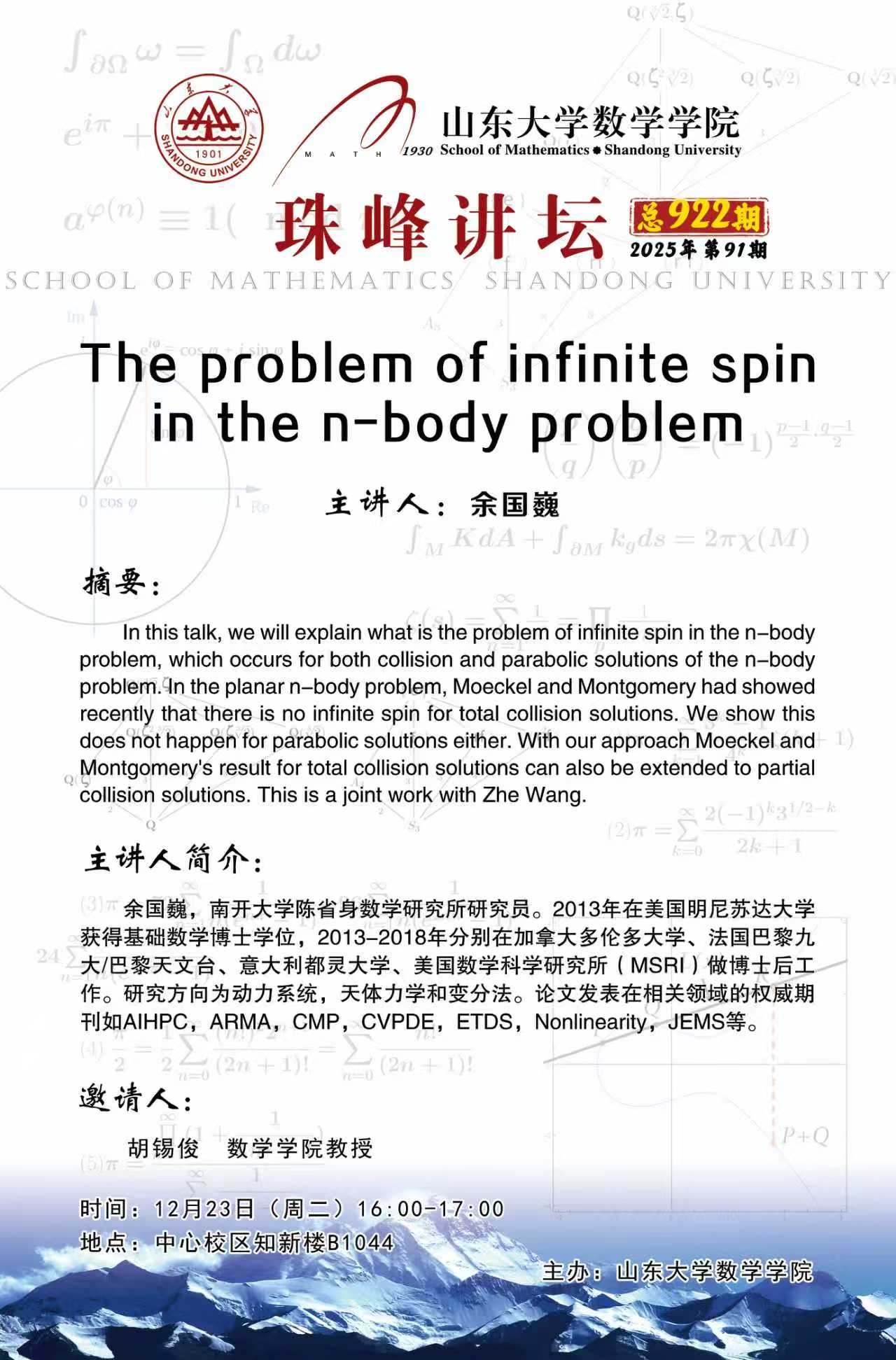 上一条:数学学院珠峰讲坛第922期:The problem of infinite spin in the n-body problem
