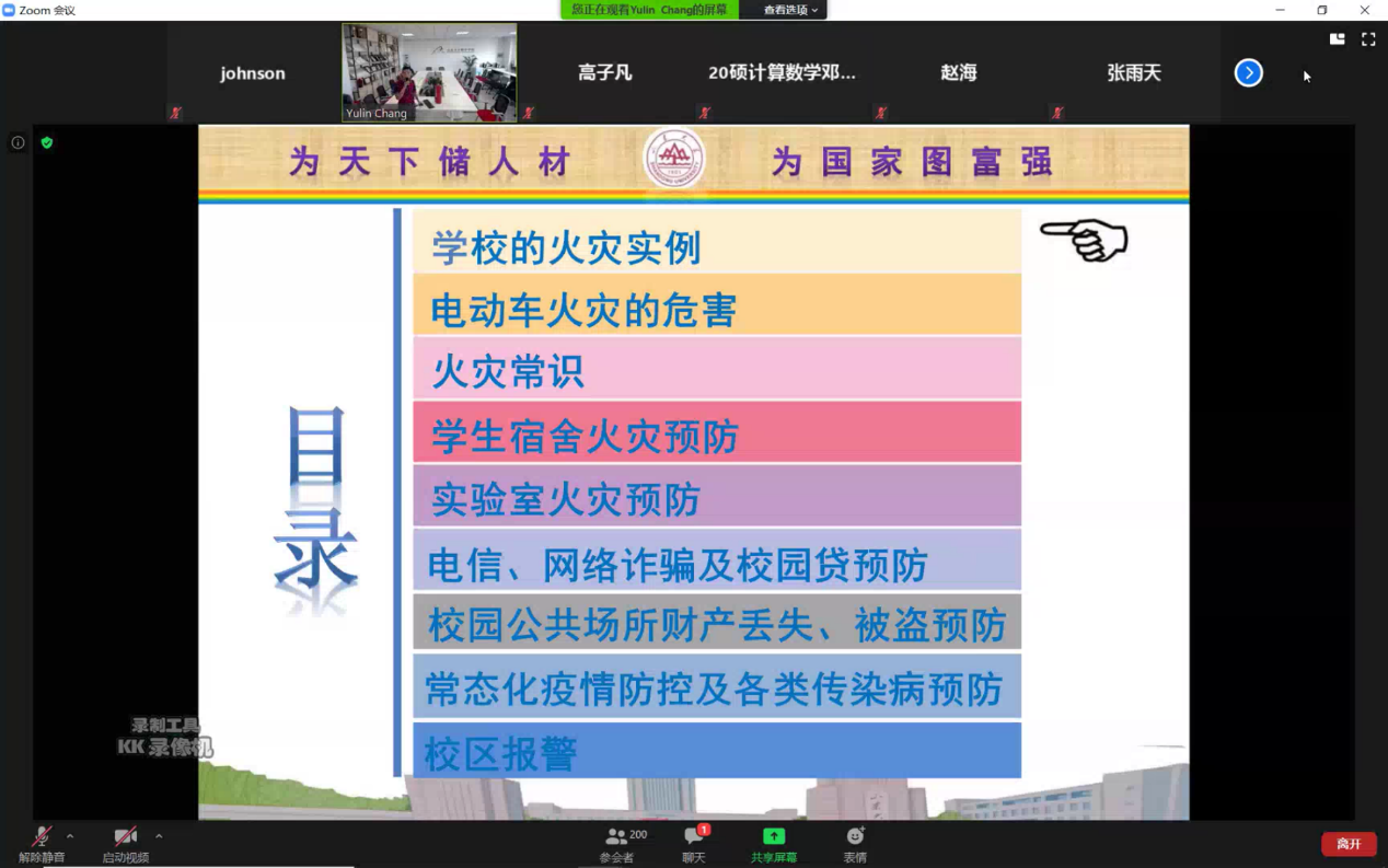 9月16日下午,数学学院邀请学校公安处的杜春兴老师为2020级新生做了新生安全教育讲座。2020级全体研究生新生参加了该讲座。