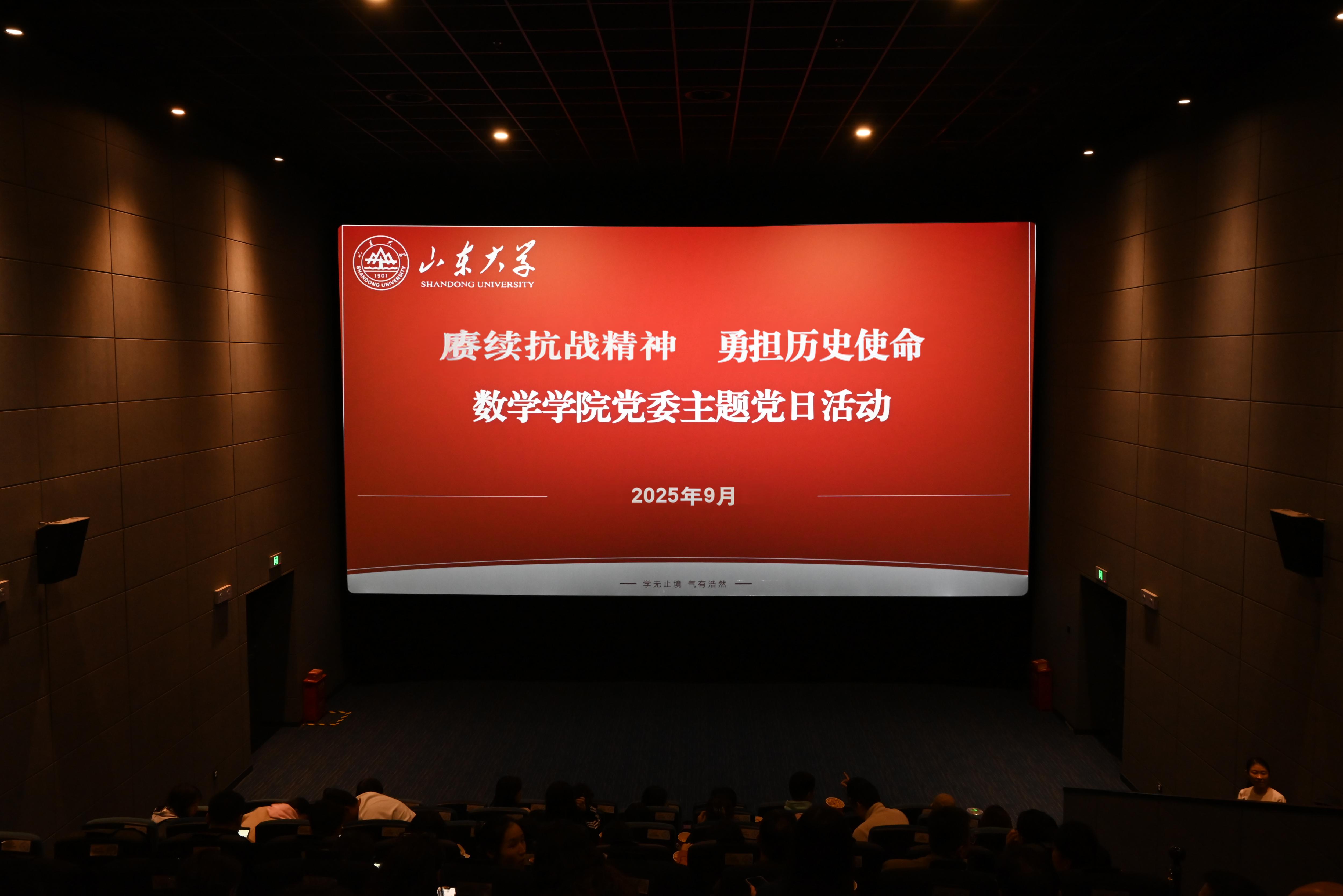 为纪念中国人民抗日战争暨世界反法西斯战争胜利80周年,进一步弘扬伟大抗战精神,厚植新时代爱国主义情怀,9月25日,数学学院党委举办“赓续抗战精神,勇担历史使命”主题党日活动,组织党员师生代表集体观看了重大历史题材影片《731》,接受爱国主义与革命传统教育的精神洗礼。