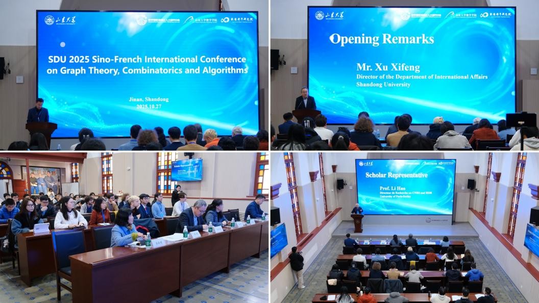 山东大学2025中法图论、组合与算法国际会议由山东大学数学学科举办,是济南市“海智计划项目”、山东大学“科技引领未来”学术会议与“山东大学全球友好学校交流周”的重要组成部分。会议聚焦组合数学与算法理论的前沿进展及其在信息科学、人工智能等领域的应用,旨在推动国际学术交流合作与产学研用融合。来自中国、法国、波兰等国家17个单位的二十余名专家学者,济南超级计算中心有限公司技术专家,数学国家高层次人才培养中心、数学学院、数据科学研究院师生代表参加会议。
