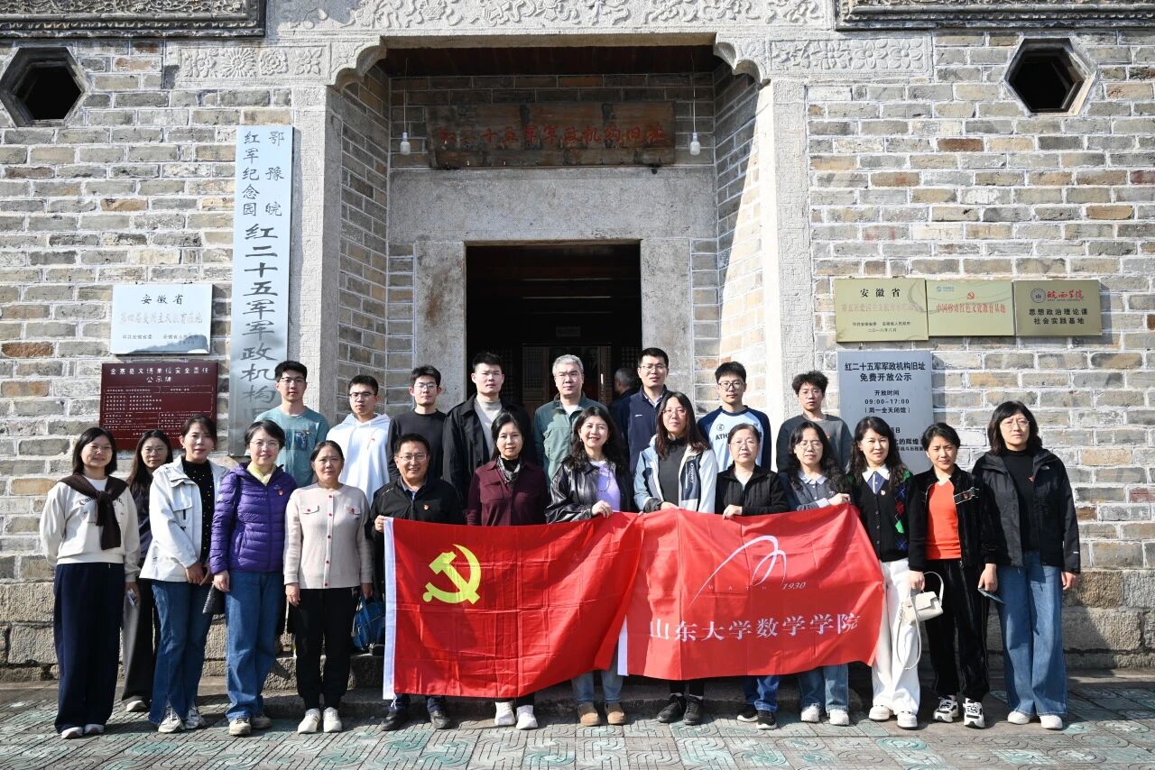 为深入学习宣传贯彻党的二十届四中全会精神,弘扬革命传统、传承红色基因,11月14日至15日,山东大学数学学院党委组织师生党员代表赴金寨县大别山革命老区开展主题党日活动。数学学院领导班子及师生党员代表近30人参加活动。