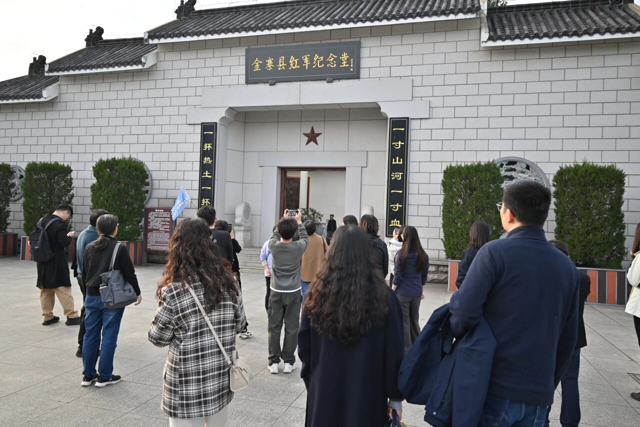 金寨县作为中国革命的重要策源地和人民军队的重要发源地,具有深厚的革命历史底蕴。在金寨县红军广场,学院师生瞻仰了革命烈士纪念塔、红军纪念堂、洪学智将军纪念碑、革命烈士墓园。全体党员在革命烈士纪念碑前庄严肃立,重温入党誓词,深切缅怀为民族解放事业英勇献身的英烈。